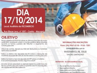 INFORMAÇÕES/INCRIÇÕES: Fone:(96) 9967-0118 – 9153-7201 contato@drvales.com.br INVESTIMENTO> R$ 100,00 VAGAS LIMITADAS!! INSTRUTOR: ELCIDES BARROS VALES. Fiscal de Tributos Municipal Bacharel em Direito & ...