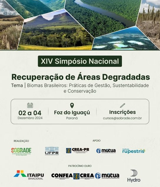 De 02 a 04 de dezembro, em Foz do Iguaçú, acontecerá o XIV Simpósio Nacional com o tema: Biomas Brasileiros- Práticas de Gestão, Sustentabilidade e Conservação. O evento trará importantes atualizações sobre recuperação de áreas degradadas e abord ...