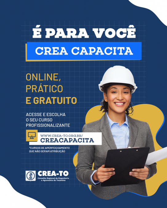 A plataforma Crea Capacita, que oferece cursos online do Conselho Regional de Engenharia e Agronomia do Tocantins (Crea-TO), disponibiliza diversos cursos de aperfeiçoamento profissional gratuitos e online. Os cursos disponíveis na plataforma buscam compleme ...