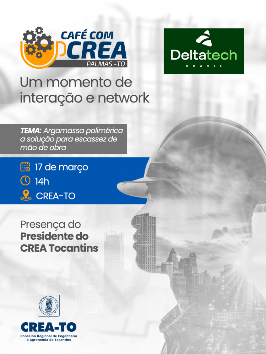 Com o objetivo de estabelecer integração e trocas de experiências entre os profissionais, o Conselho Regional de Engenharia e Agronomia do Tocantins (Crea-TO), juntamente com a empresa Deltatech, realizará mais uma edição do Café com Crea. O evento acontecerá nesta terça-feira, 17 de março, às 14 horas, na Sede do Regional.