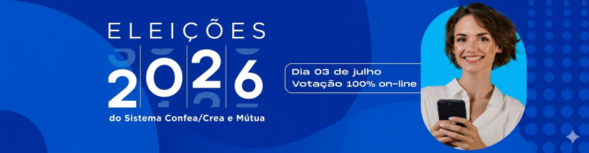 As Eleições 2026 do Sistema Confea/Crea e Mútua serão realizadas pela internet e o profissional apto a votar fará login na plataforma utilizando CPF e senha enviada por e-mail e/ou mensagem de celular, por isso, é imprescindível que seus dados cadastrais estejam atualizados.